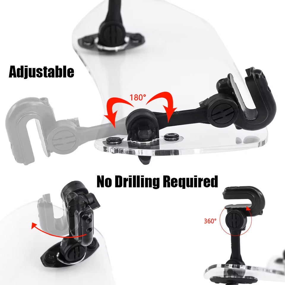 - EASY INSTALLATION: No tools or drilling required: Quickly attaches to your existing motorcycle screen without the need for drilling or special tools.