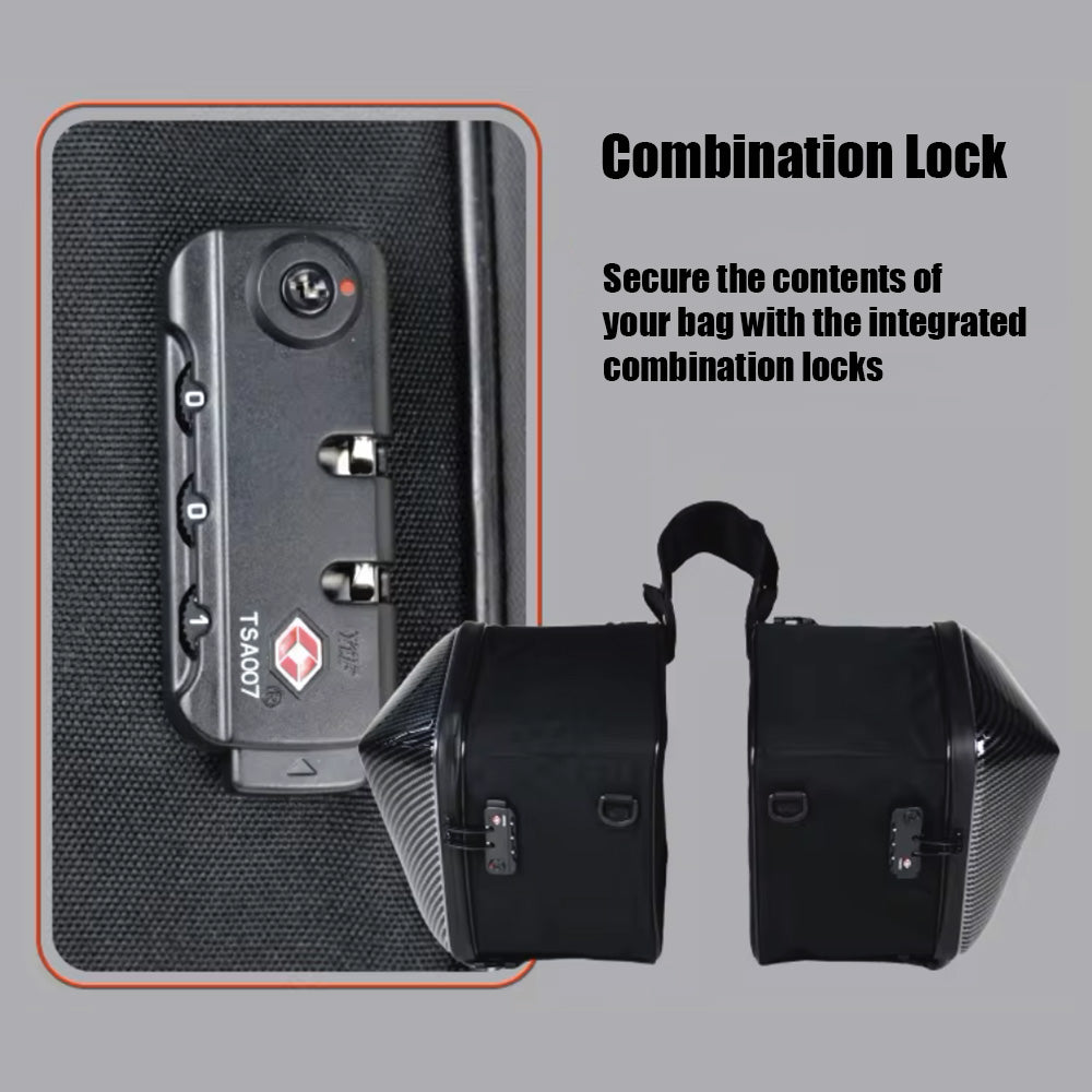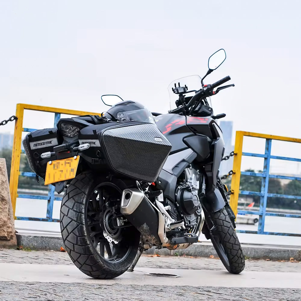 The Motocentric Saddle Bags are designed to blend bold looks with everyday practicality. Their aerodynamic, carbon-fibre appearance enhances your bike's aesthetics while reducing wind resistance. With adjustable fitment via a cross harness and Velcro system, they’re easy to mount and secure.