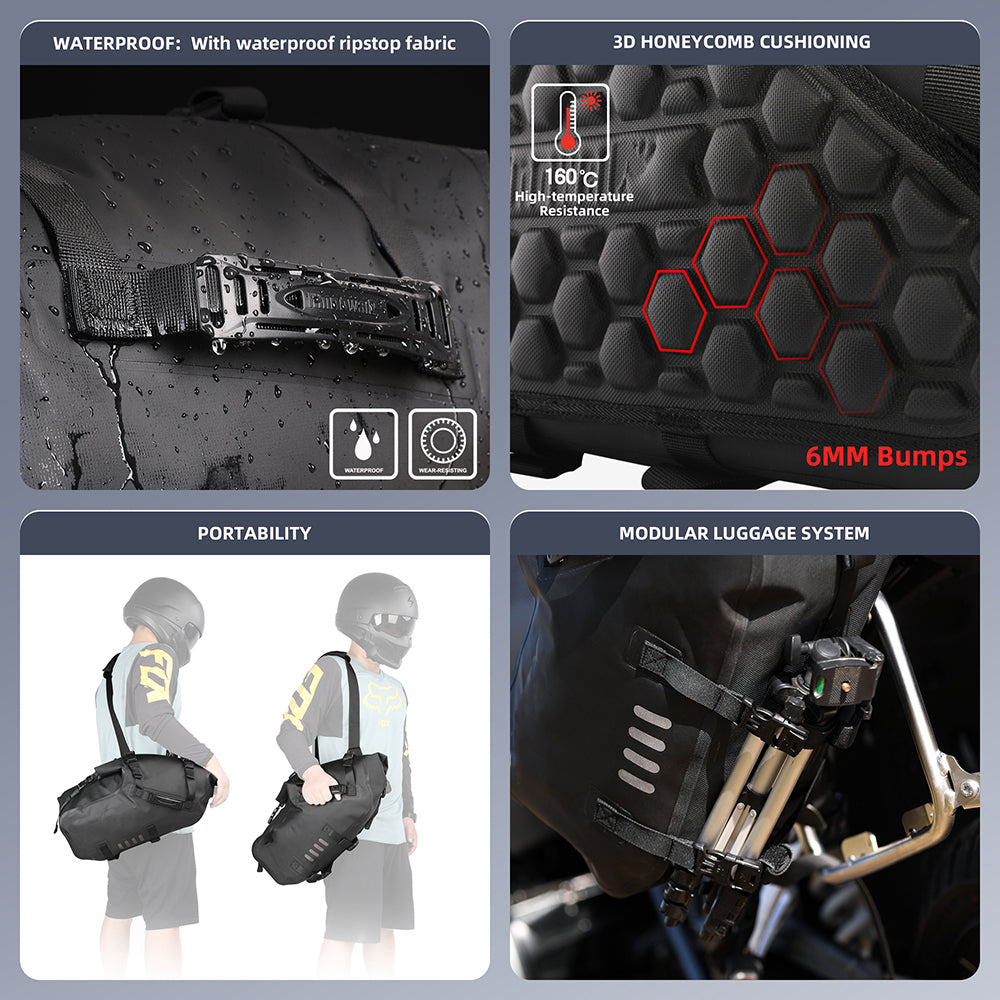 The heat-resistant 3D honeycomb backplane ensures that your belongings stay safe even in extreme conditions, while the reflective logo enhances visibility for night rides. These bags are perfect for adventure touring and sports touring bikes, making them the ultimate companion for any journey.